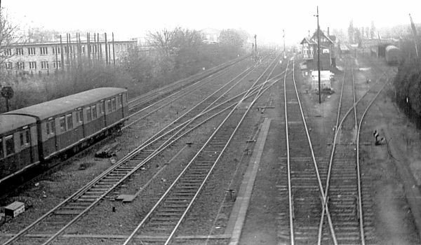 Ab dem 13. August 1961 gab es jedoch diese Züge nicht mehr. Ja, vieles sollte sich ändern, doch im Februar des Jahres 1959 dachte noch niemand daran, dass die Stadt endgültig geteilt werden sollte. Da glitt unsre S-Bahn heran und jetzt konnten wir verreisen. Der Stationsvorsteher hob seine Kelle und rief „Zurückbleiben“. Im ersten Wagen klopfte eine Eisenbahnerin mit schief sitzendem Schiffchen gegen die Scheibe und betrat den Triebwagen. Mit einem ratternden rollenden Geräusch flogen die Türen zusammen und der Elektromotor setzte mit röhrendem tiefen Ton ein, der schnell höher wurde je mehr Fahrt der Zug aufnahm. Dumpfes Gerumpel und helles Klirren auf der Brücke über der Drakestraße, rechts und links säumten endlose Häuserreihen die vier Eisenbahngleise. Zwei für die S-Bahn und zwei für Güterzüge, die man aber nur ganz selten zu Gesicht bekam. Doch heute waren die Bahndämme, der Schotter und die Schwellen mit dicker weißer Schneeschicht versehen und trotz des grauen Himmels ging ein Leuchten von den weißen Flächen aus.