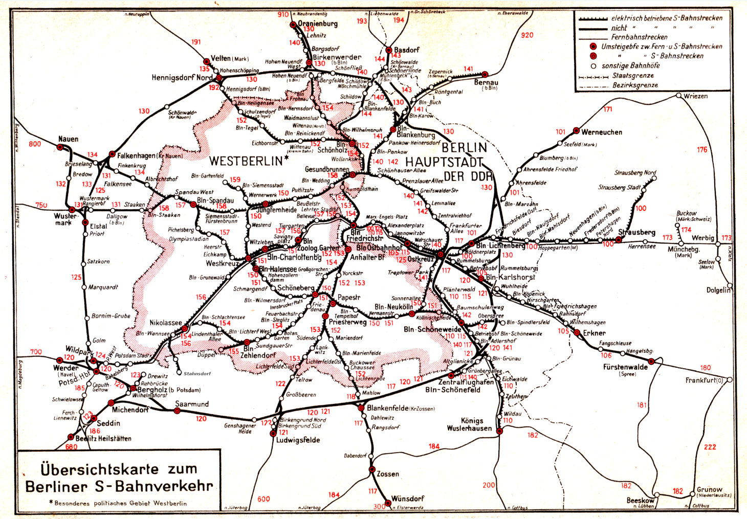 Endlich waren wir wieder draußen. Auch auf einigen Gleisen lag der Schnee und als eine S-Bahn nach Wannsee einfuhr, da glaubte man sie auf leisen Sohlen fahren zu hören. Durch das Bahnhofsgebäude sind wir nie gegangen. Ich war neugierig, was es wohl darin zu sehen gäbe. Mir ist das bis zu unserem Wegzug aus Berlin nicht gelungen das Innere zu Gesicht zu bekommen. Wir waren schon auf der Hinterseite des Gebäudes, wo eine breite Treppe nach unten führte. Ein feuchter breiter Gang, durch wenige Glühlampen funzelig erleuchtet, entpuppte sich als Tunnel. Am anderen Ausgang kam man zur Fontanestr. Jedoch wir wandten uns rechts den Schaltern im Tunnel zu. Das erste große bodentiefe Fenster gehörte zur Gepäckaufbewahrung. Meine Großmutter war sehr reiselustig. Respektlos meinte mein 13 Jahre älterer Bruder, wenn er nicht wüsste, wer die Mutter unserer Großmutter sei, dann könnte man meinen sie stamme von den Zigeunern ab. Das war nicht nett, aber verständlich. Mehr als einmal musste ich sie begleiten, wenn sie einen Koffer zur Gepäckaufgabe brachte, oder selbigen wieder dort abholte. Daneben gab es zwei Fahrkartenschalter. Das habe ich nie begriffen, warum meine Großmutter, wenn wir zu Tante Ottilie und Onkel August nach Ostkreuz fuhren, stets die Fahrkarten am ersten Schalter kauften. Dort wurden die Blechmünzen ruckzuck eingezogen und wir bekamen Fahrkarten mit schwarzen Aufdruck. Ich wollte zu gern den grünen langen Fahrkartenautomaten ausprobieren, aber ich durfte es nicht. Er röhrte so dunkel und spuckte die Fahrkarten rot bedruckt aus. Allerdings warfen dort die Leute die messingfarbenen Groschen ein. Dann ging es die Treppe zum Bahnsteig hinauf, wo in einer verglasten „Wanne“ die Fahrkartenknipserin Zeichen in unsere Fahrkarten stanzte. Endlich waren wir auf dem Bahnsteig angekommen. In der Ferne sah ich die Dampflok, die einen Güterwagen zog, ein Zug stand auf einem fernab gelegenen Bahnsteig, dem sogenannten amerikanischen Bahnhof. Dort wurden Soldaten, Panzer und anderes Material entladen. Es gab sogar eine eigene Straße dorthin. Aus der Ferne sah ich eine S-Bahn herannahen. Ah, das war ein alter Zug, wie spannend. An der Stirn waren zwei Dachlaternen angebracht und auf den Waggondächern befand sich eine Längsreihe von Hörnchen. Viel später lernte ich dafür den Begriff „Kuckuckslüfter“. Der großgewachsene aber einarmige Stationsvorsteher mit seine Kelle rief ganz laut:“Nicht einsteigen!“, der Zug hatte schon fast den Bahnsteig erreicht. Neben den Dachlaternen waren die Scheinwerfer unförmig wie bei einer Kutsche am unteren Ende angebracht. Obwohl ich nicht lesen konnte, sah ich doch den grünen Strich, der gleichsam das Fahrtziel durchstrich. Großmutter hatte mir gesagt, dass der Zug nach Oranienburg fahre, wir aber den keinesfalls benutzen könnten und so musste ich zurücktreten und betrachtete den durchfahrenden Zug mit Respekt. Dort saßen ganz normale Menschen, ein Rätsel wie so viele auf der Welt für einen neugierigen Jungen, der bald sechs Jahre zählen sollte. Zwanzig Jahre später erfuhr ich etwas über diese Züge mit durchgestrichenen Fahrtziel. Weil zu dem Zeitpunkt, als wir Tante Ottilie und Onkel August besuchten, die Umgehungsstrecke noch nicht vollendet war, die von Potsdam aus über Königs-Wusterhausen durch Ostberlin in großem Bogen an Oranienburg und Nauen vorbei wieder gegen den Uhrzeigersinn nach Potsdam führte. Sie verlief ausschließlich auf dem Gebiet der DDR. Bis zur Vollendung mussten die Potsdamer Bürger also quer durch Westberlin nach Ostberlin reisen. Das ergab merkwürdigerweise einen gewissen Fahrgastschwund. Einige hatten sich wohl im Bahnhof geirrt und waren in Zehlendorf oder Steglitz ausgestiegen, wo es ihnen offenkundig viel besser gefiel. Sie beschlossen zu bleiben. Das ist natürlich kein Ruhmesblatt für den öffentlichen Nahverkehr, so kam es zu den sogenannten „Durchläuferzügen“ mit durchgestrichenem Fahrtziel. Wer in Potsdam oder Griebnitzsee einstig, der konnte frühestens am Potsdamer Platz wieder aussteigen. Oder er fuhr weiter ab Nordbahnhof ohne Halt bis Hohen Neuendorf oder Oranienburg.