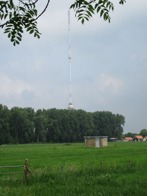 Kurzwellensender von PhilipsTyp TB 3/2000 Ausgangsleitung ca. 4000 Watt Exponat im "omroep zender museum" im Atombombenschutzraum des Senders "Ijsselstein" bei Utrecht (Niederlande) ![]() Gerbrandy-Turm, höchster Sendemast der Niederlande (Höhe 382 m) im Vordergrund das Einspeisehäuschen für den inzwischen abgebrochenen Mittelwellensender, welcher bedient und im Kriegsfall mit einem Radioprogramm aus dem Bunker den noch lebenden Rest der niederländischen Bevölkerung versorgen sollte |