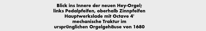 Mein skeptischer Gesichtsausdruck über meine kirchliche Zukunft war begründet. Die Patentante war nur ein schwacher Trost, das Orgelspiel dröhnte noch in den Ohren. Kein Wunder, das Orgelwerk aus der wilhelminischen Verfallzeit mit pneumatischer Klapperlade, Walze und Schreipfeife 4', brannte glücklicherweise zu Weihnachten, Ende der Fünfziger Jahre ab, was bei der Kantorin eine traumatische Belastungsstörung bewirkte. Die neue Schuke-Orgel, ein Standardinstrument der Sechziger Jahre wurde von ihr verteidigt wie im 2. Weltkrieg die Festung Breslau, wo sie ihr Examen abgelegt hatte. Dadurch wurde ein Diakon verschlissen und meine Wenigkeit übte dann doch lieber in der Pauluskirche. |