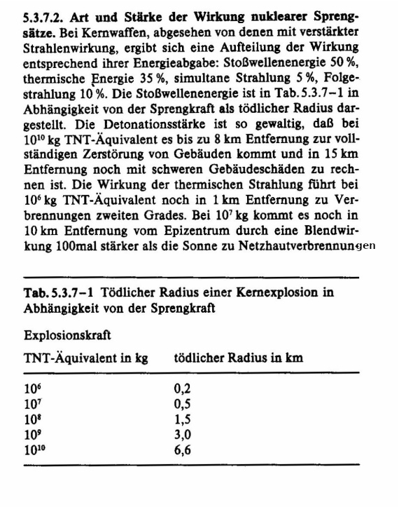 Auswirkungen einer Kernwaffendetonation. Unter dem Äquivalent