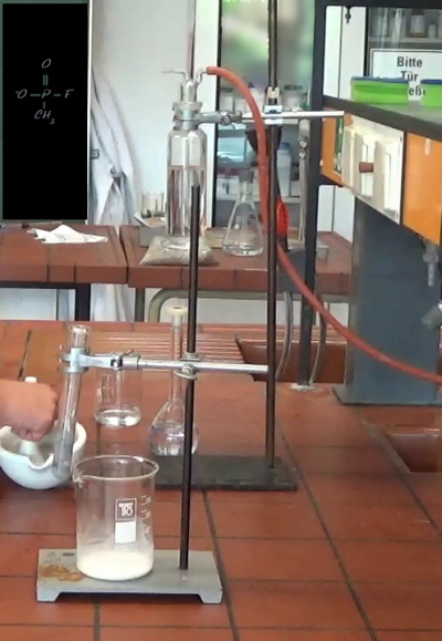 Am folgenden Tag hatte sich der Himmel aufgelockert und gelegentlich schaute die Sonne durch die Wolken. Professor Röber ließ sich von dem Wetter anstecken und suchte das Labor seines Mitarbeiters Walter Gottschlich auf. Im Abzug war in einem Heizpilz ein Rundkolben mit aufgesetzter Vigreuxkolonne, in der eine gelbliche Flüssigkeit brodelte. Walter Gottschlich saß an einem Tisch und schrieb ein Protokoll. „Tach, Herr Gottschlich, wie geht’s voran?“ begann der Professor die Unterhaltung. „Ach, Herr Professor Röber, so weit bin ich ganz zufrieden, die Synthese steht im Großen und Ganzen. Das Rohprodukt ist gerade unter Rückfluss am Kochen. Aber das Hauptproblem ist die Umsetzung von Zweifach-Dichlorophenyläthanon und dem Triäthylphosphit. Ich muss das Triäthylphosphit noch stabilisieren, damit es sich nicht zersetzt, besonders im industriellen Prozess.“ Professor Röber nickt: „ Das ist in der Tat der Knackpunkt und wir müssen uns beeilen, damit wir dem Klassenfeind zuvorkommen, man munkelt, dass da schon Patente eingereicht werden sollen in Amerika. Wir brauchen aber unser „Chlorfenvinphos“ im Kampf gegen den Kartoffelkäfer und den anderen Schädlingen. Ich wollte Sie hier einmal noch wegen einer wichtigen anderen Gelegenheit sprechen. Die ist streng vertraulich.“
