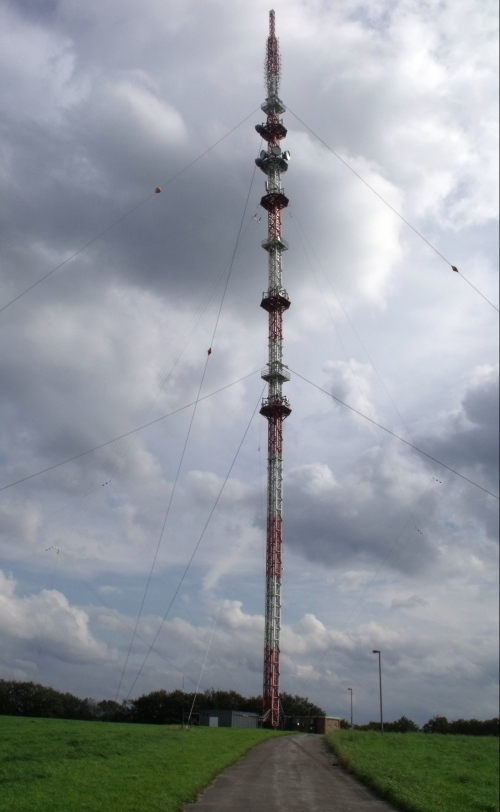 Kurzwellensender von PhilipsTyp TB 3/2000 Ausgangsleitung ca. 4000 Watt Exponat im "omroep zender museum" im Atombombenschutzraum des Senders "Ijsselstein" bei Utrecht (Niederlande) ![]() Gerbrandy-Turm, höchster Sendemast der Niederlande (Höhe 382 m) im Vordergrund das Einspeisehäuschen für den inzwischen abgebrochenen Mittelwellensender, welcher bedient und im Kriegsfall mit einem Radioprogramm aus dem Bunker den noch lebenden Rest der niederländischen Bevölkerung versorgen sollte |