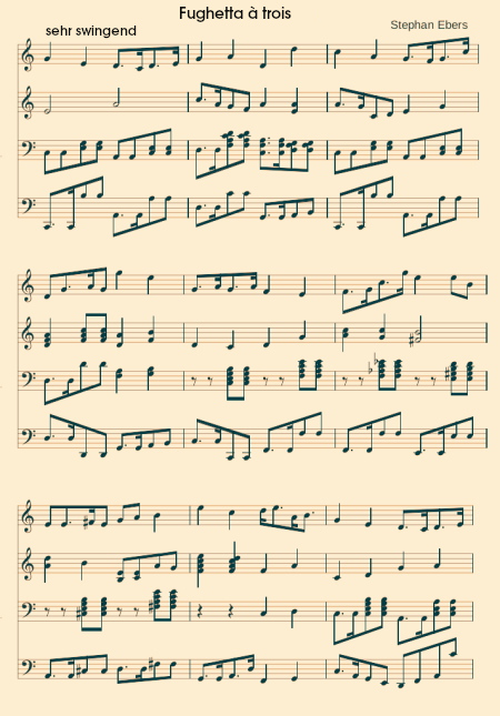 des Goliardes gegründet anno 1994 mit wechselnder Besetzung, meist jedoch mit Violine, Violoncello, Orgel und Kontrabass. Nachfolgende Komposition wurde zur Schlussnummer jeden Konzertes: ![]() Tjalf Hoffmann, Violine Mattias Spitzbarth, Violoncello Stephan Ebers Orgel Klosterkirche Marienwerder 1996, Hannover vollständige Noten auf Anfrage |